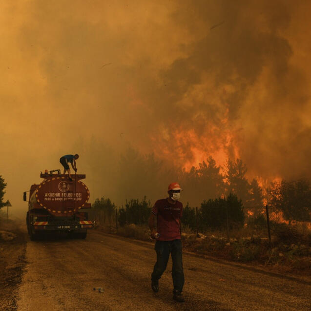 Pada Rabu, 28 Juli 2021, kebakaran hutan besar-besaran melanda Antalya, Turki. Dampaknya sejumlah ratusan rumah, kantor, kendaraan, ribuan hewan ternak, dan lebih dari 150 hektar lahan pertanian rusak parah akibat gelombang panas yang terjadi. Dikutip dari Badan Penanggulangan Bencana dan Darurat (AFAD) Turki, sampai dengan Sabtu (31/7), terdapat enam orang kehilangan nyawa, lebih dari 300 orang terluka dan memaksa 10.000 lebih penduduk lainnya harus mengungsi. Presiden Turki, Recep Tayyip Erdogan, menetapkan status zona bencana atas kebakaran hutan yang terjadi di wilayah selatan Turki ini.